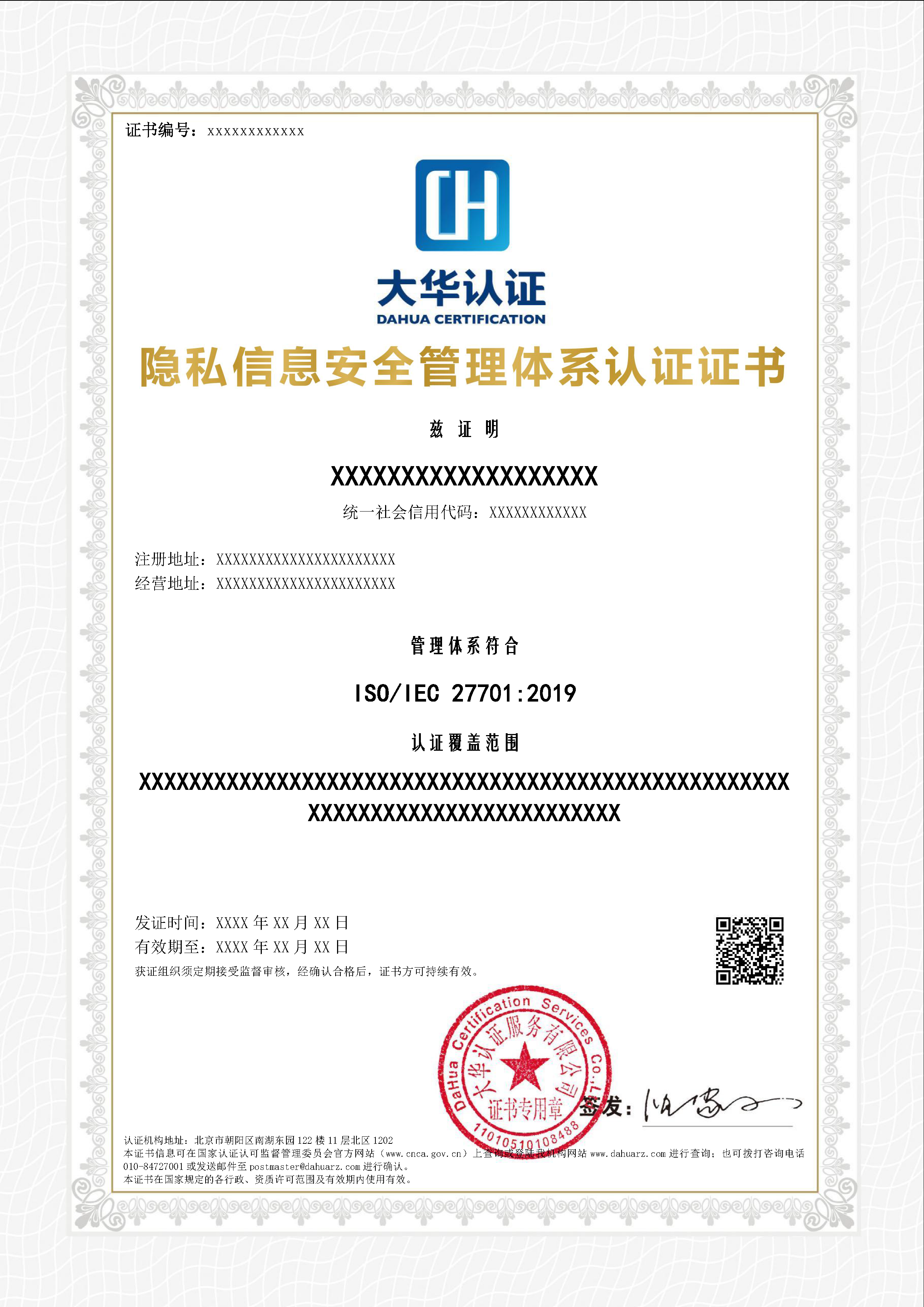 ◇ISO/IEC 27701 隐私信息管理体系(PIMS)认证 是在隐私保护方面对 ISO/IEC 27001 和ISO/IEC 27002 的扩展,针对保护可能受到个人信息收集和处理影响的隐私提供了更多相关指南。获得PIMS认证的企业标志着其在保护用户数据和个人信息安全方面符合国际标准ISO27701的要求,信息安全管理将与隐私信息管理进行密切整合,为客户及用户带来信任并提升品牌价值。